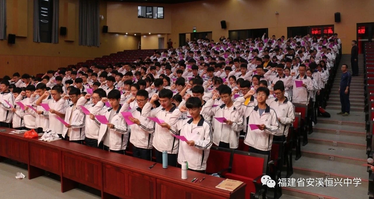 在這孕育希望的季節(jié)里,為鼓舞師生斗志,提振備考士氣,2月27日晚,安溪恒興中學(xué)在鐵錚大禮堂舉行“2021屆高三畢業(yè)班百日誓師大會(huì)”,高三年師生全體集結(jié),百日誓師,為夢(mèng)而戰(zhàn)!李育民校長(zhǎng)出席大會(huì)并作動(dòng)員報(bào)告;林文土?xí)浿鞒执髸?huì)。
