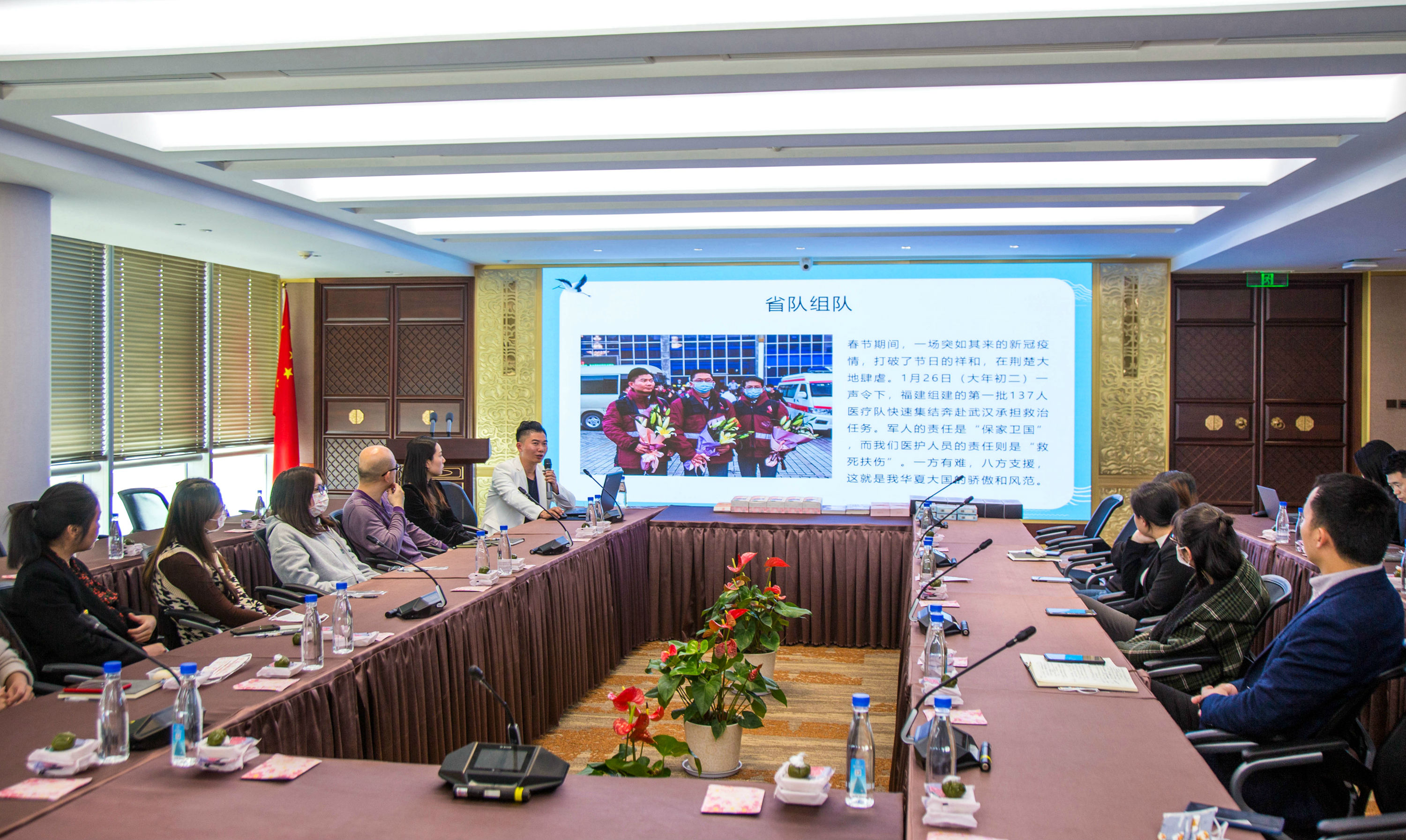 昨日(3月24日)下午,恒興集團舉辦第35期悅界分享會,主題為“櫻花爛漫,遇見廈門抗疫英雄——援馳武漢回閩1周年的肖琦醫(yī)生分享會”。當天下午,肖琦準時現(xiàn)身恒興集團,員工在42樓前臺送上代表陽光幸福的花束。稍事休息,肖琦便開啟了他的抗疫經(jīng)歷分享。