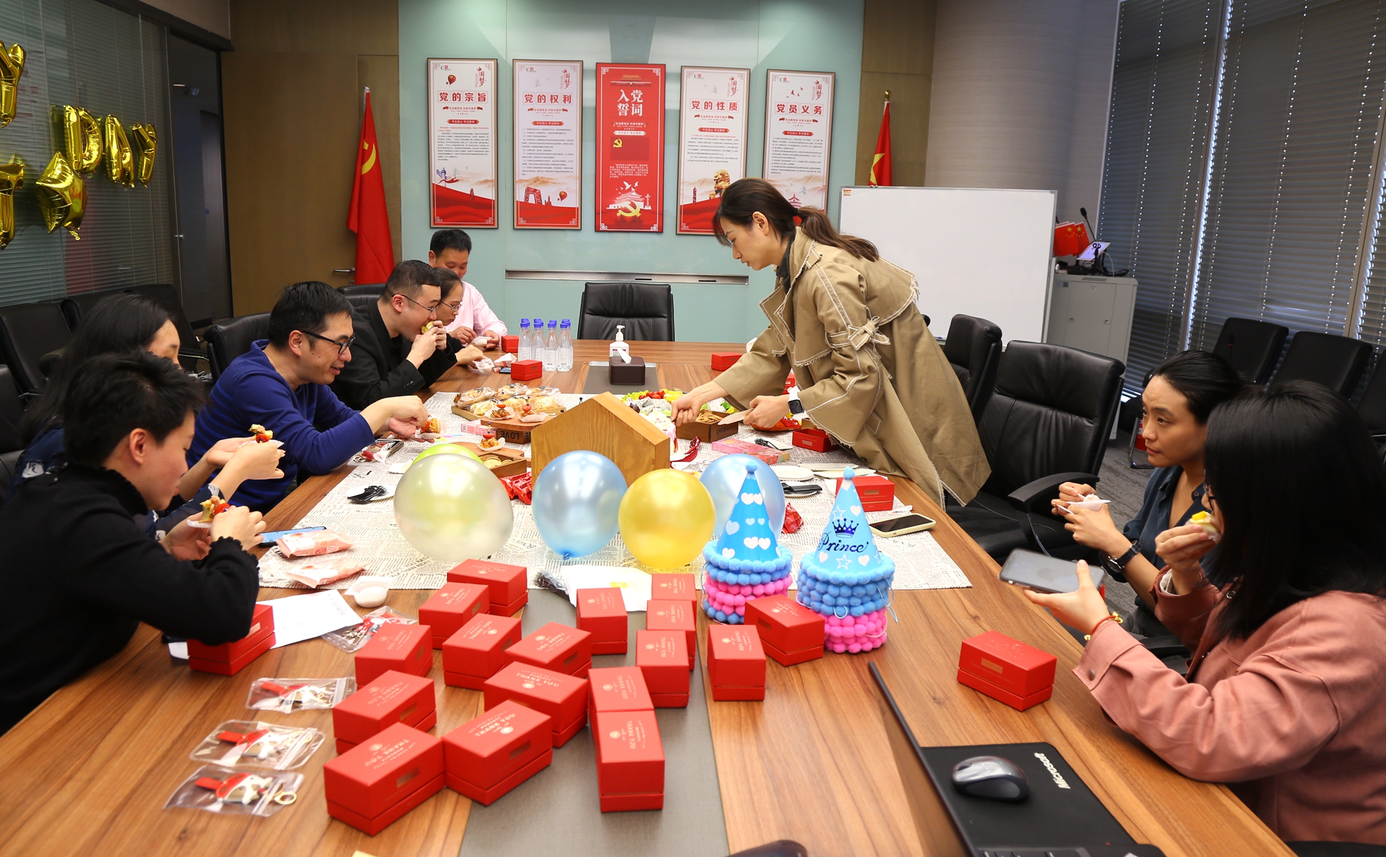 下午4:45,一季度的生日壽星們十余人陸續(xù)到場,還有部分同事因工作在身不得不缺席小聚。同為壽星的人力部員工劉琳,貼心為現(xiàn)場壽星們備好了生日帽,并播放生日快樂的背景歌曲。王偉文副總裁、趙揚(yáng)帆、賴志強(qiáng)、司馬菊雪、李麗欽等壽星現(xiàn)場合影留念,為一同生日小聚的緣分,留下一抹精彩瞬間。