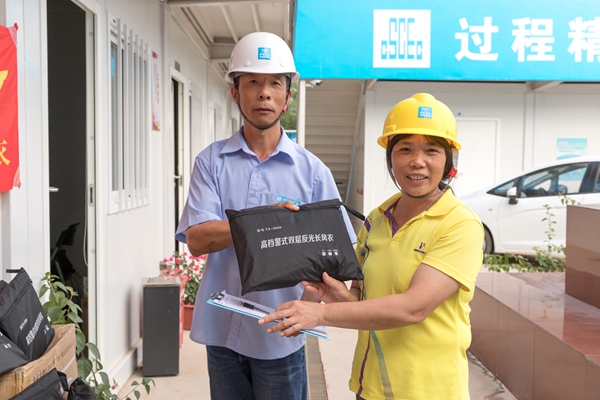 安全是項(xiàng)目建設(shè)的重中之重。對(duì)于一線建筑工人而言,雨天作業(yè)不僅增大了施工難度,也增加了危險(xiǎn)系數(shù)。為此,華東師范大學(xué)希平雙語(yǔ)學(xué)校在雨季來(lái)臨之前,籌集了2000件雨衣,免費(fèi)發(fā)放給施工現(xiàn)場(chǎng)的管理人員和各班組工人,在雨天等特殊作業(yè)環(huán)境下,為工人提供有效的健康和安全保障。