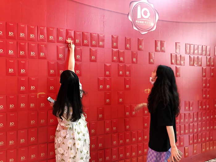 炎炎夏日最能讓大家心動的,大概非紅包莫屬了。中午12點,一樓大堂紅包墻正式開放,不到半小時,一整面400個紅包就被熱情的白領們搶光,現(xiàn)場上演“手撕紅包”大戲,熱鬧非凡。